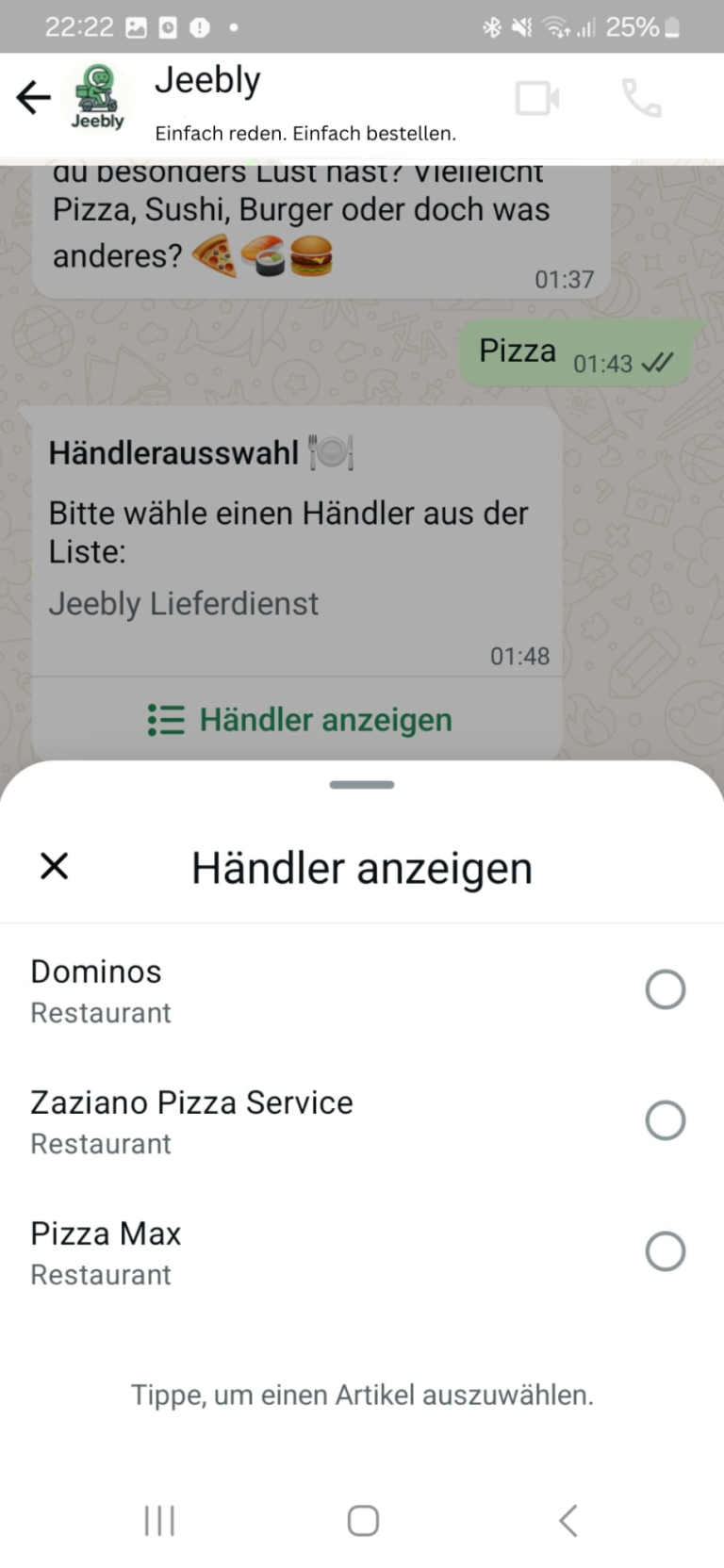 Bestellen über WhatsApp – ganz ohne App oder Konto.
